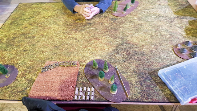 However, I completely fluffed my deployement, with all my decent units too far out right, which Robin sensibly avoided. Only my exceptionals were in the line, and Robin was doing his best to avoid them too!