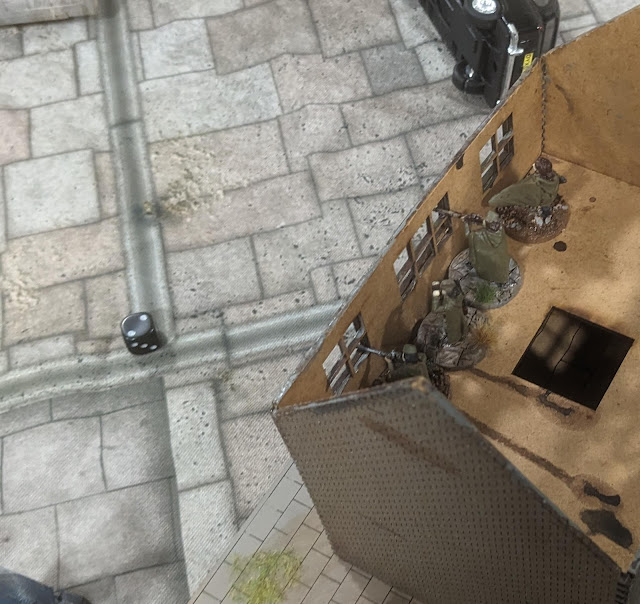 In the bunker, my HQ squad and on the roof, the support weapons teams, facing towards one, three and five.