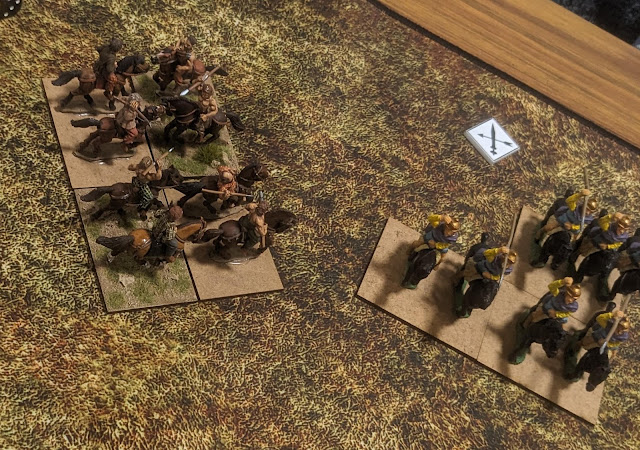 We did both opt for a terrain piece each, which had NO effect on the game at all. Mark stacked his pikes (one of which was superior, in the centre while his cavalry (included downgraded to superior agema) took the flanks, as is traditional. On my left were my Numidian cavalry and my recently gifted celtic light horse (Gareth, they are beautiful, thank you). On my right, an average legion and a superior were stacked behind each other purely because I mismeasured my deployment space and could not have deployed the rear unit legally. Thankfull, being drilled means they are super mobile and don't need many cards to get where I wanted them! My Gauls and Spaniards sit to their left, and then a wall of legionaries with my second superior unit and my exceptionals firmly in the centre. Yes, my camp is a copy of The Gallic War, which is almost exactly a camp size, average, fortified, come and get it!